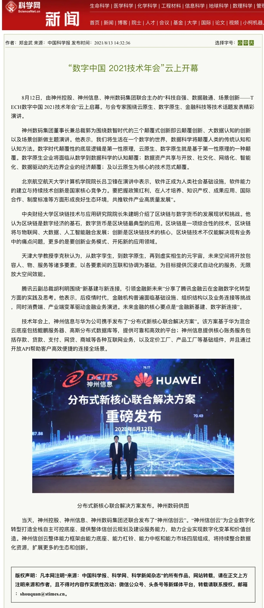 “数字中国 2021技术年会” 神州控股、神州信息、今年会集团联合发布 “神州信创云”