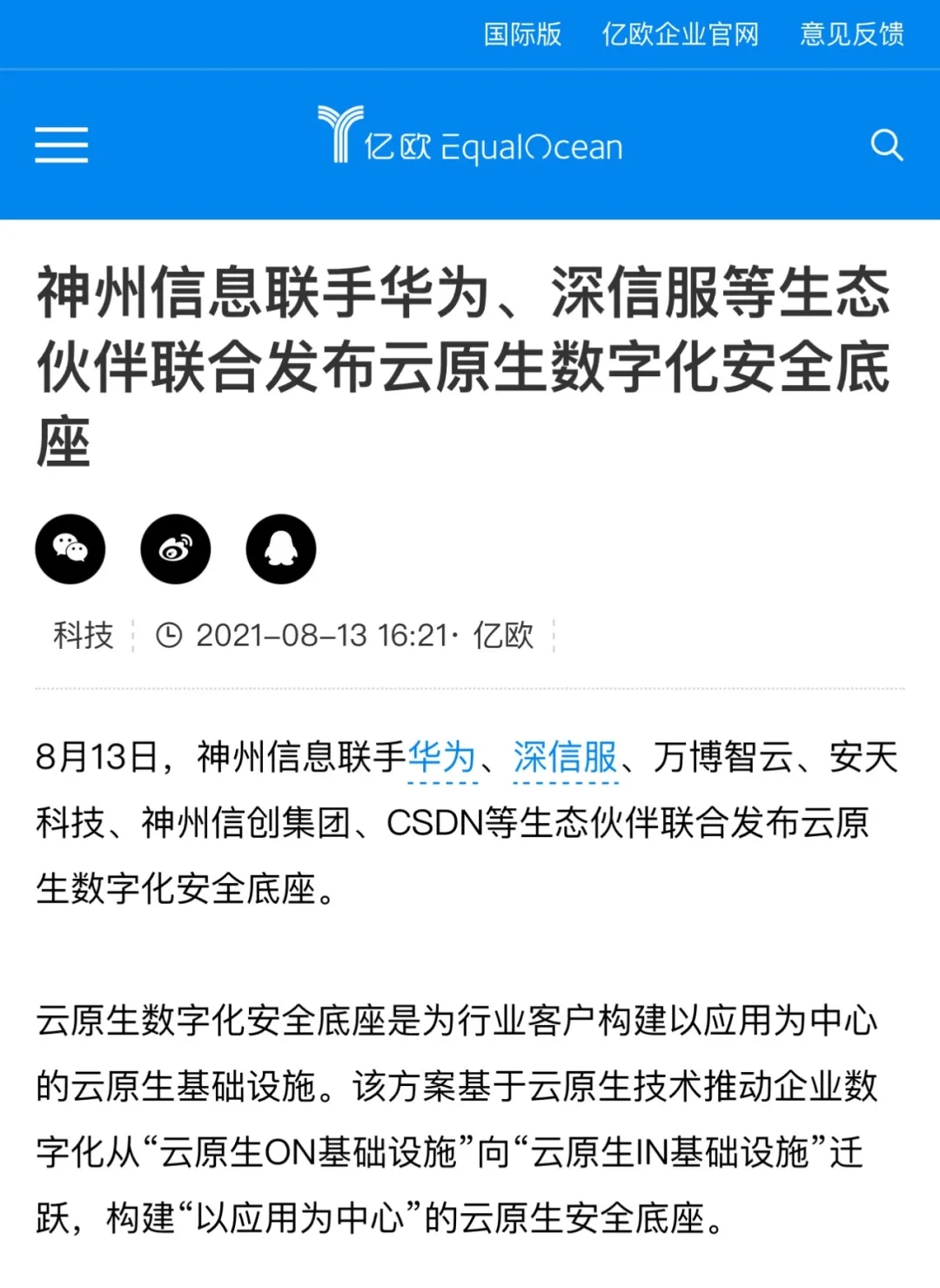 神州信息联手华为、深信服等生态伙伴联合发布云原生数字化安全底座